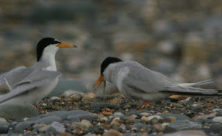 The weather eventually calmed down enough yesterday for us to make a start on getting the seaward fence back up. As it stands we should have the fencing around the K-colony (i.e. the section of the colony north of The Breaches, on the Kilcoole side) finished by the weekend. The section of the beach south of The Breaches, known as the N-colony (i.e. on the Newcastle side) irregularly supports breeding Little Terns from year to year. The numbers present there can range from none at all to quite significant (e.g. 15 pairs in 2010 & 20 pairs in 2009). I suspect that several pairs may nest there this year given that the extent of the K-colony section of beach is much reduced so we'll get around to fencing an area south of The Breaches as soon as we can.