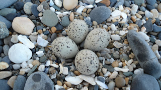 We've now got 4 pairs of Ringed Plover breeding on site, consisting of 3 pairs in the K-colony with a total of 12 young (8 of which I've ringed) & a 4th pair at the N-colony currently incubating 4 eggs. Furthermore, there's also a pair of Oystercatchers nesting in the N-colony & incubating 3 eggs (typical clutch size) which have been coded as OC1 (I'll let you work that one out yourselves!). Both the Ringed Plover & Oystercatcher nests in the N-colony have been temporarily fenced off with flexi-net & marked with signposts to ensure that people or dogs don't trample the eggs.