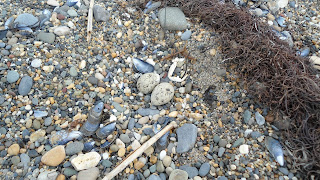 A couple of nests have single eggs in them which look like they won't hatch but this is normal for a few clutches with three eggs but saying that there are still quite a few broods of three chicks out & about keeping the parents busy. The eggs hatch usually within a day of each other so the difference between the A chick (i.e. the first one to hatch) & the B chick is only a matter of a millimetre or two on the wing & a gram or so in weight. Nest K12 hatched it's three eggs but the third, C chick was found dead in the nest scrape a day later. It was wet when I found it so probably hadn't been brooded that morning during showers. It's two siblings were no longer in the nest scrape so the parents must have started moving them on towards the foreshore pretty quickly. The last time I saw all three of the chicks together it was quite noticeable that the A & B chicks were much bigger than the C chick so I reckon that they were getting the Lion's share of the food & the poor wee fella just wasn't strong enough to survive.